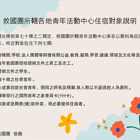 Chientan Youth Hotel is located 0.5 km from Taipei Songshan airport and next door to Jiantan Elementary School bus stop.